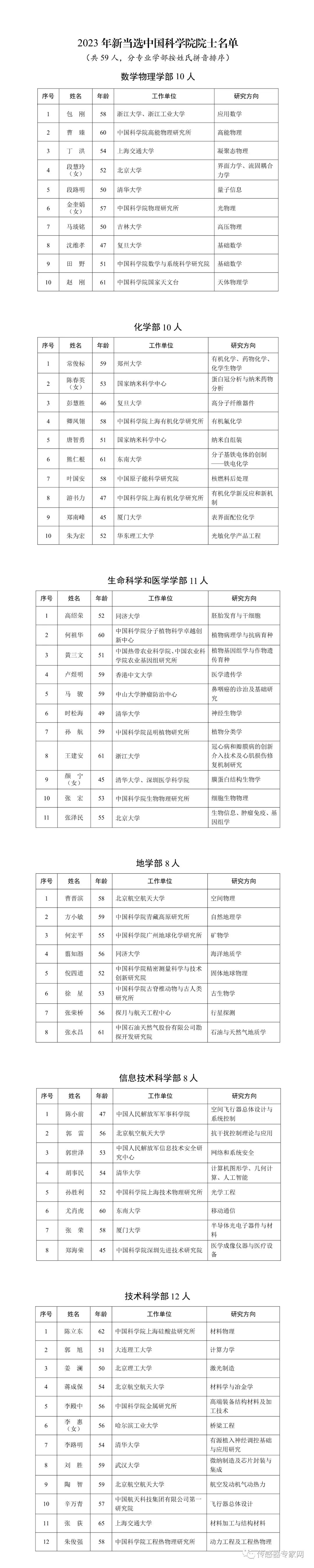 2023年新當選中國科學院院士名單【全】(可上下滑動查看,可點擊放大查看)