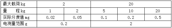 最大載荷3000kg,實際分度值d=0.1g,電測量范圍0300g,氣體稱量范圍0260kg,測量不確定度≤1g(k=2)
