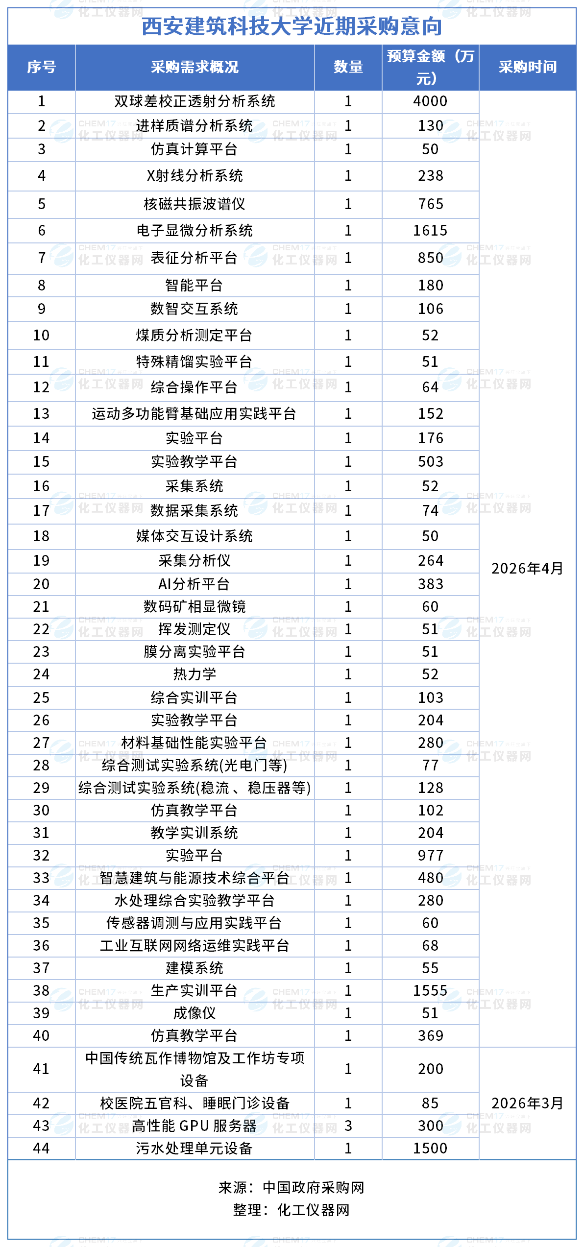 近期,西安建筑科技大學(xué)發(fā)布多項(xiàng)儀器采購意向,采購預(yù)算金額17047萬元,涉及儀器設(shè)備包括雙球差校正透射分析系統(tǒng)、進(jìn)樣質(zhì)譜分析系統(tǒng)、仿真計(jì)算平臺(tái)、X射線分析系統(tǒng)、核磁共振波譜儀、電子顯微分析系統(tǒng)等。預(yù)計(jì)采購時(shí)間2026年3月-4月。