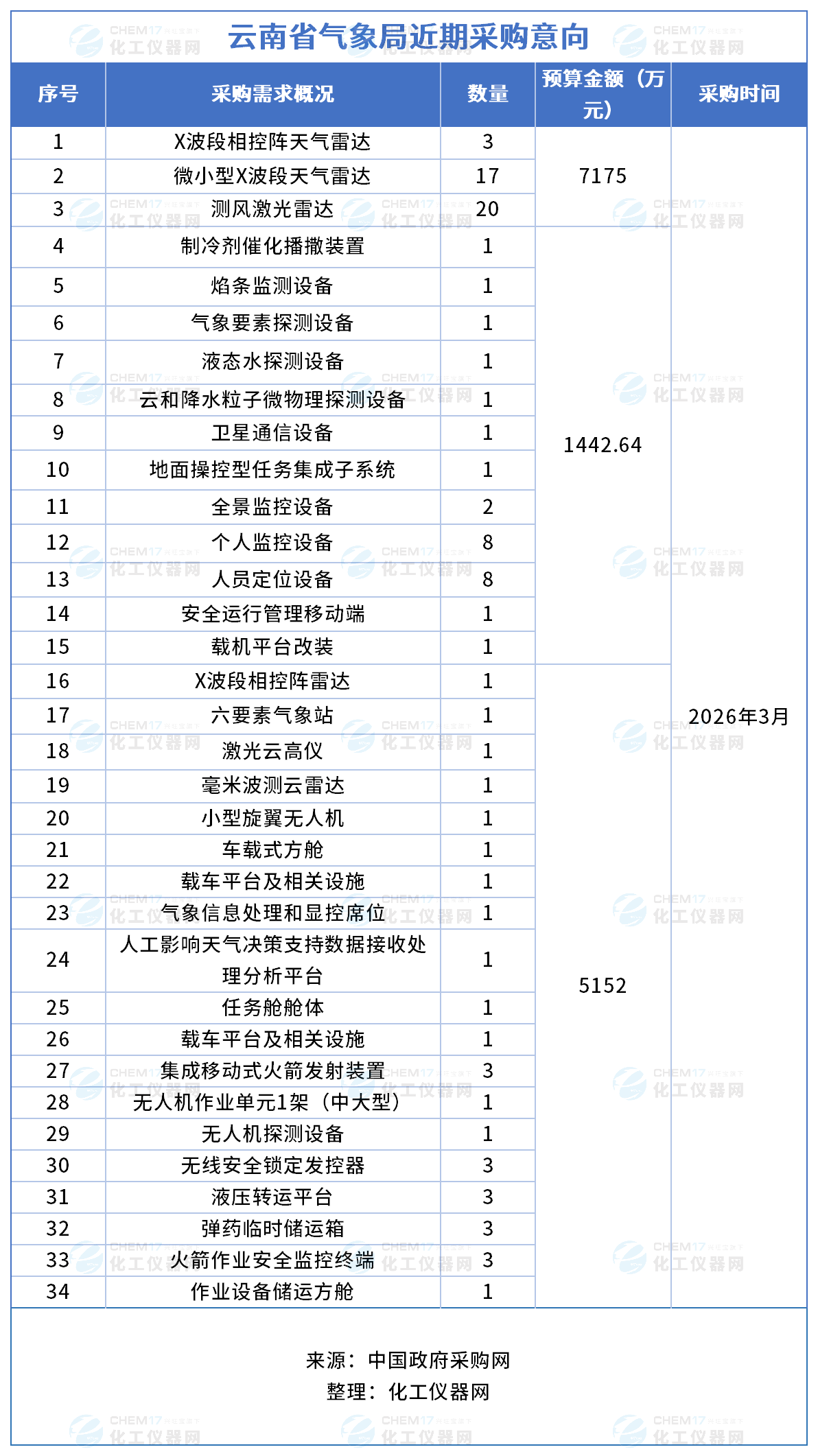預算超1.3億!云南省氣象局發布3月儀器采購意向