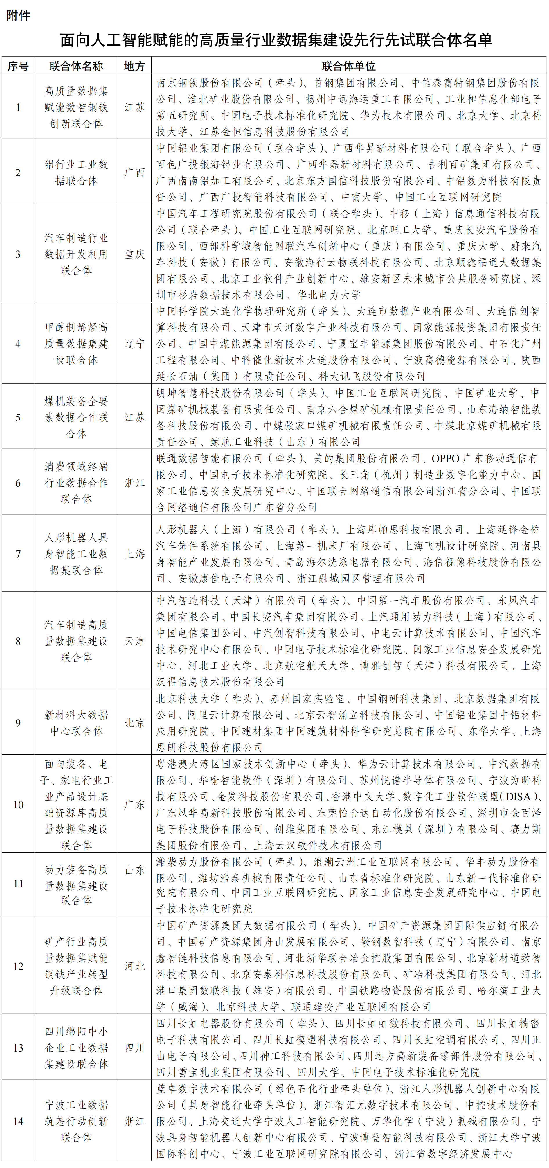 關(guān)于公布面向人工智能賦能的高質(zhì)量行業(yè)數(shù)據(jù)集建設(shè)先行先試聯(lián)合體名單的通知